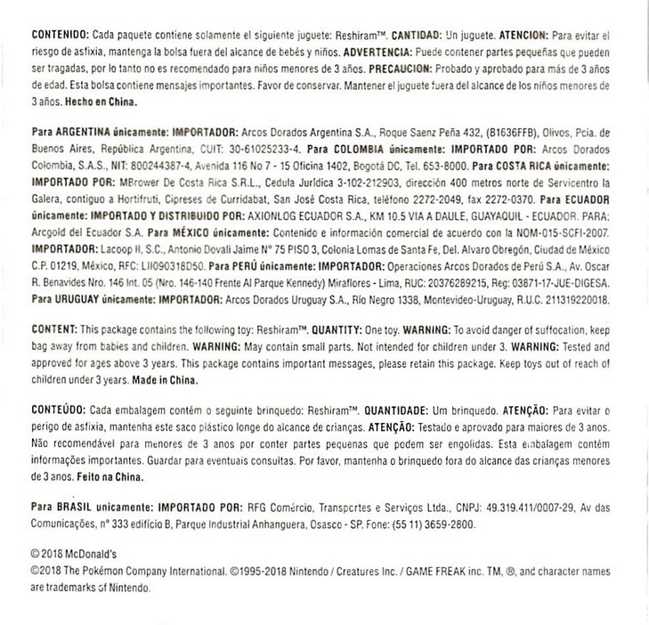 Otros - McDonalds Happy Meal - Pokemon 2018 - Reshiram