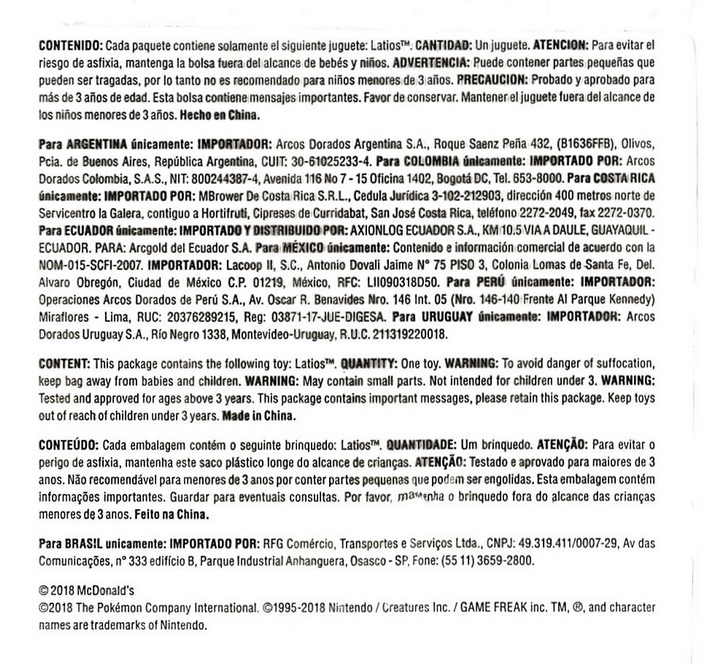 Otros - McDonalds Happy Meal - Pokemon 2018 - Latios